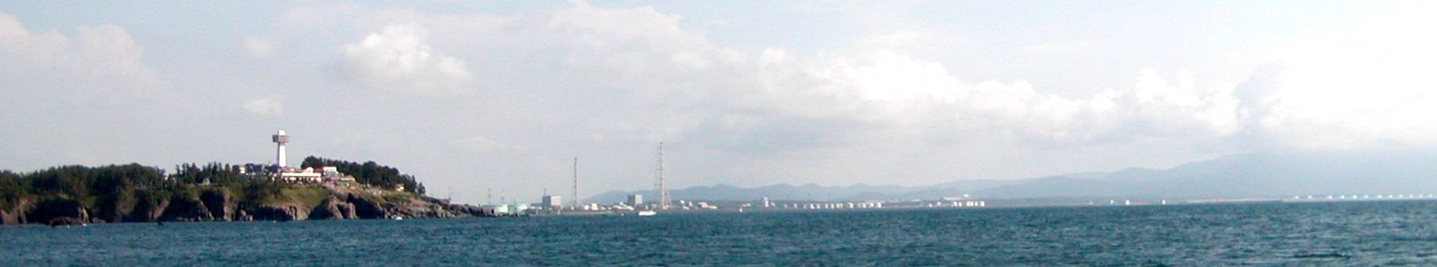 福井火力発電所の煙突の向こうは延々と石油備蓄基地になっている。